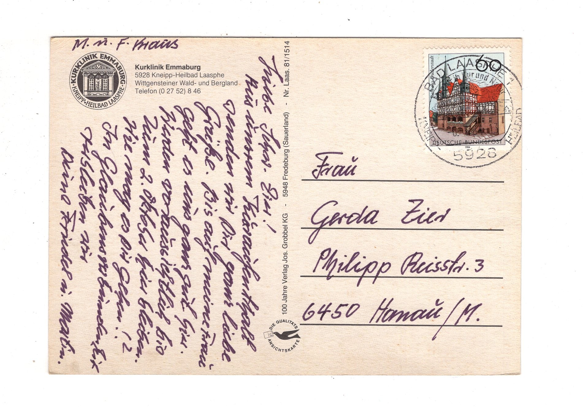 Ansichtskarte Bad Laasphe / Kurklinik Emmaburg / I1-66