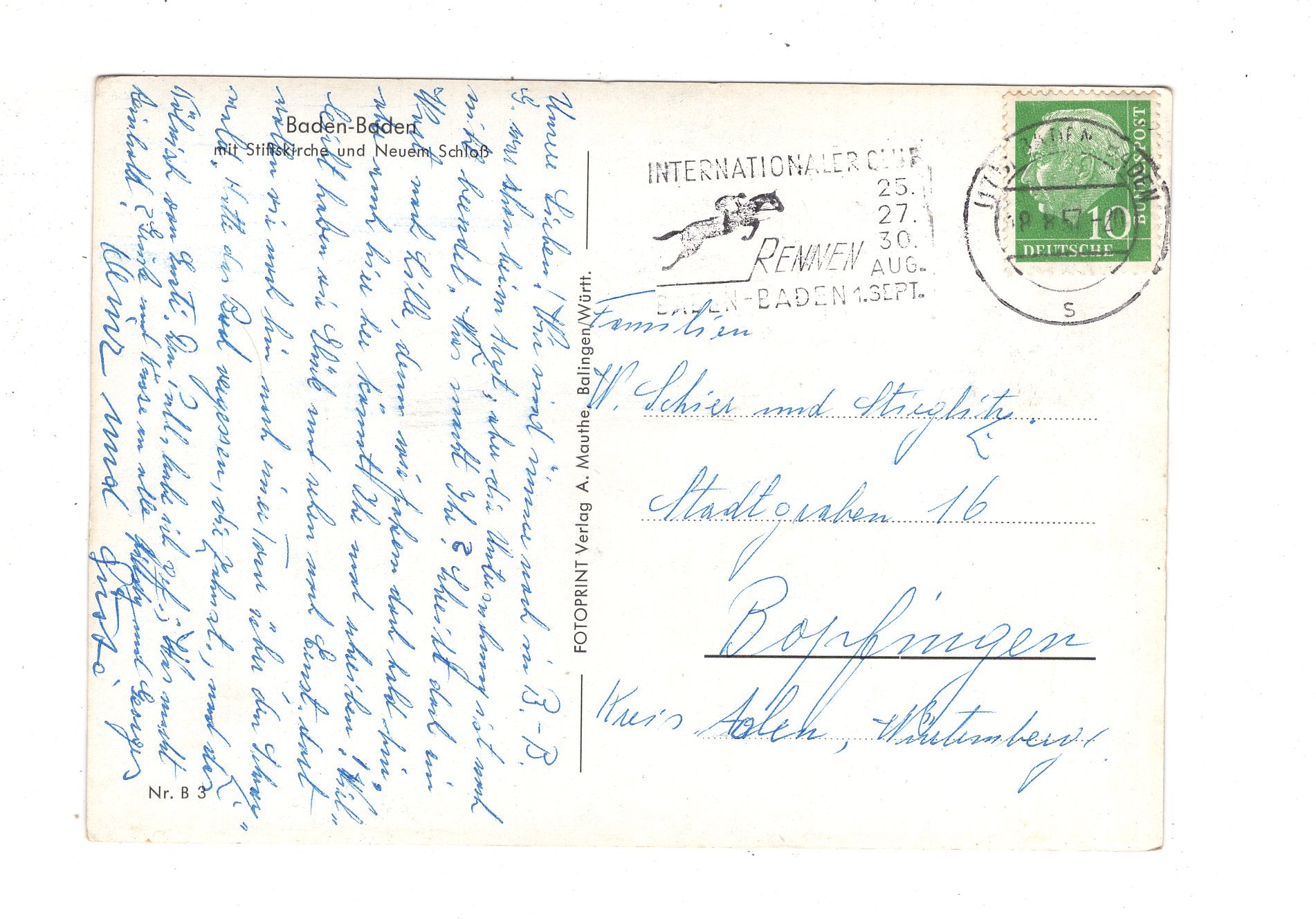 Ansichtskarte Baden-Baden mit Stiftskirche und Neuem Schloss / J1-57