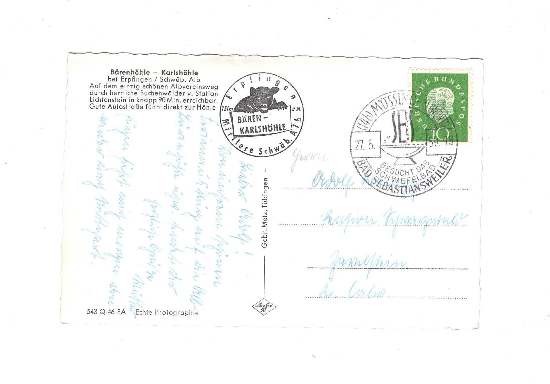 Ansichtskarte Bärenhöhle - Karlshöhle bei Erpfingen / Schwäbische Alb