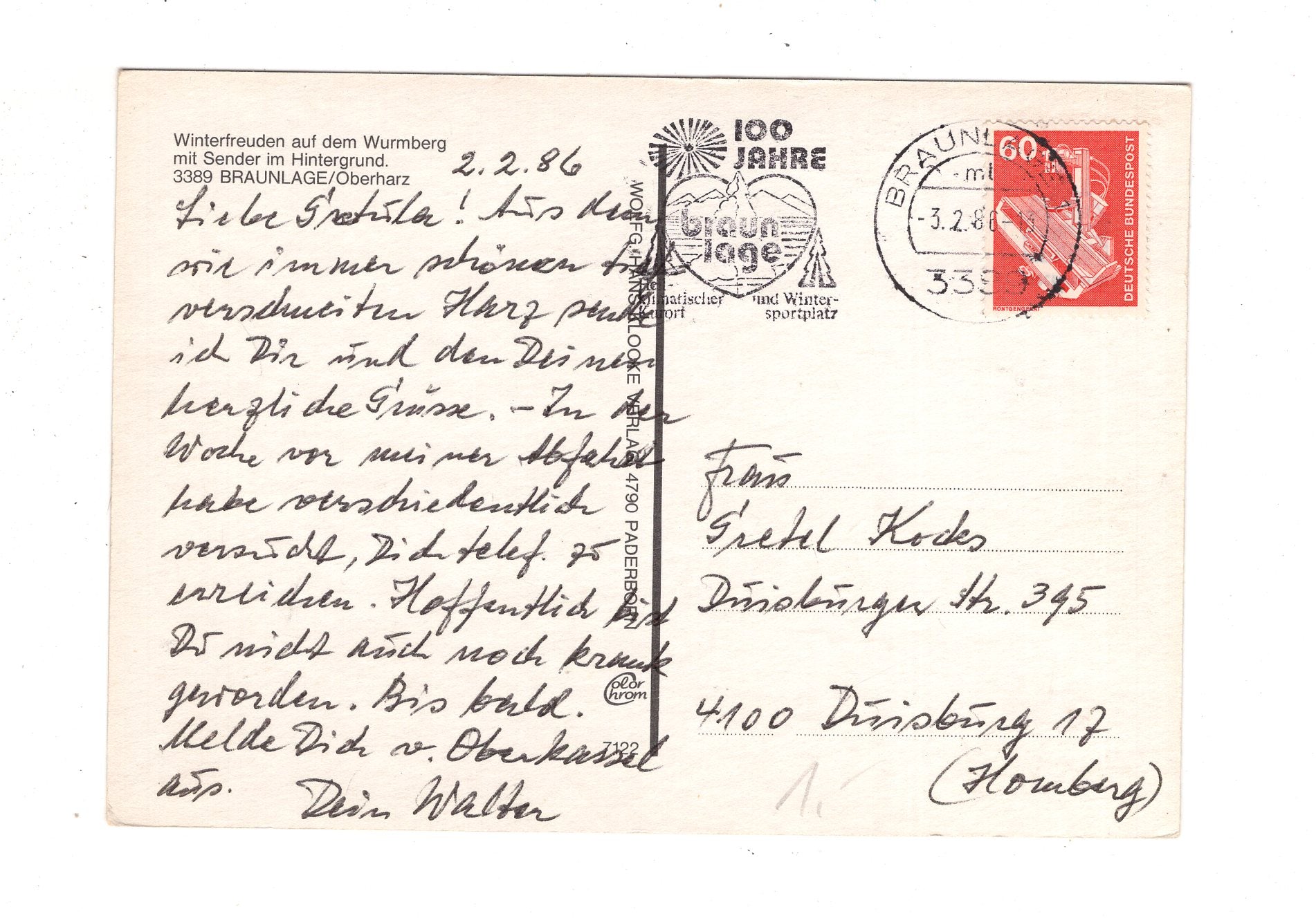 Ansichtskarte Braunlage im Oberharz / Wurmberg / J1-62