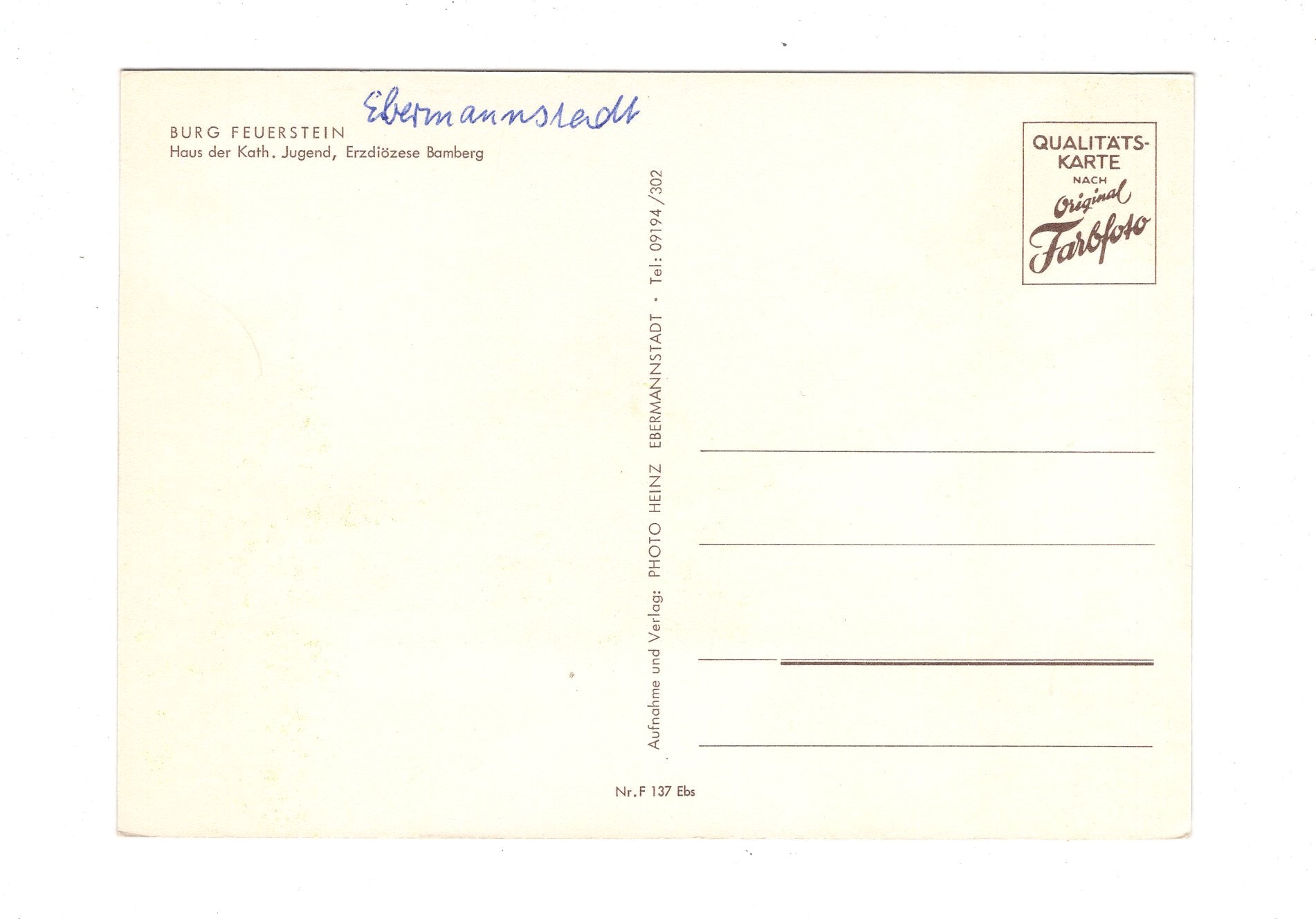 Ansichtskarte Burg Feuerstein / Erzdiözese Bamberg / H1-62