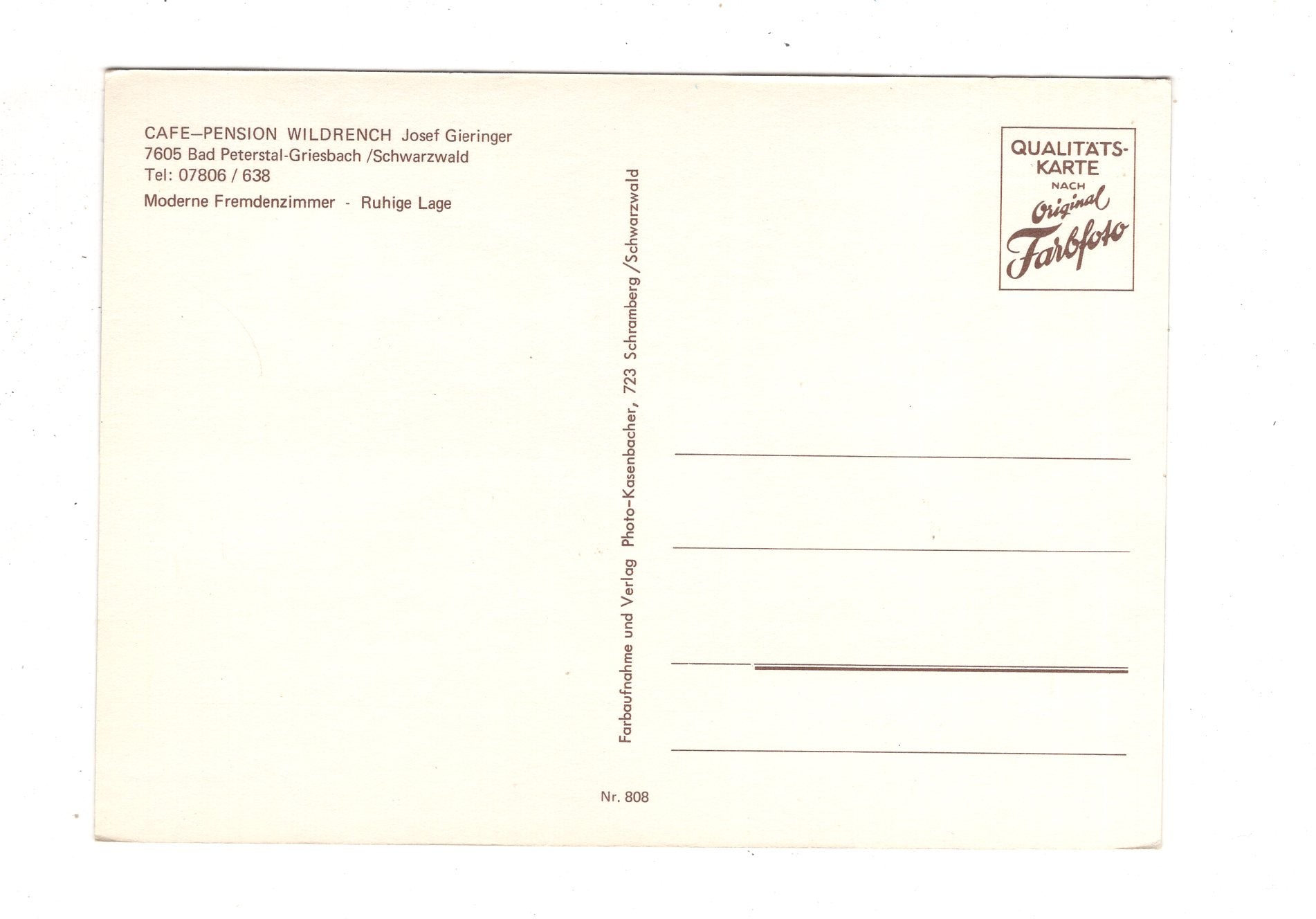 Ansichtskarte Café-Pension Wildrench / Bad Peterstal-Griesbach / Schwarzwald / K1-49