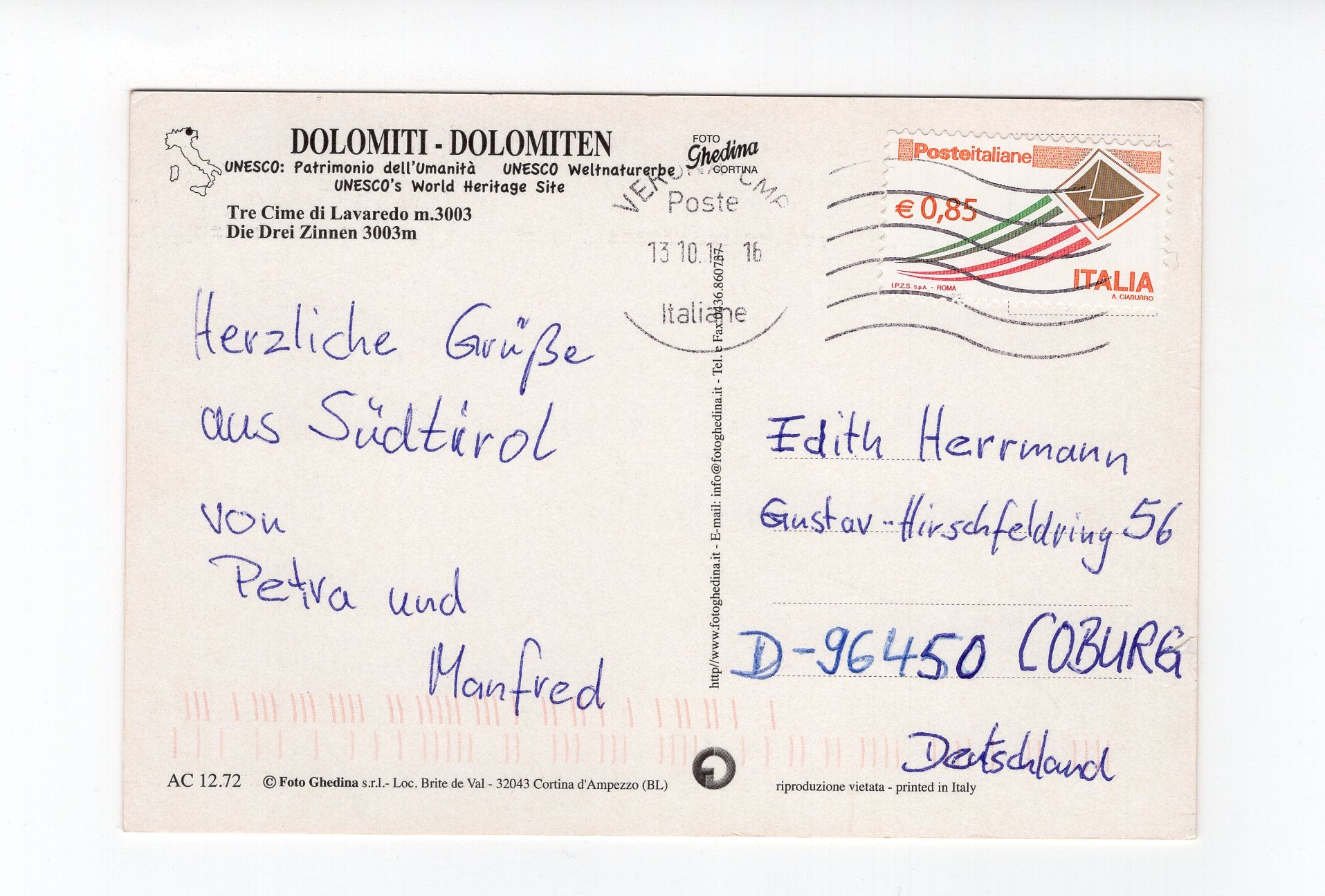 Ansichtskarte Dolomiten / Die Drei Zinnen / Südtirol / Italien
