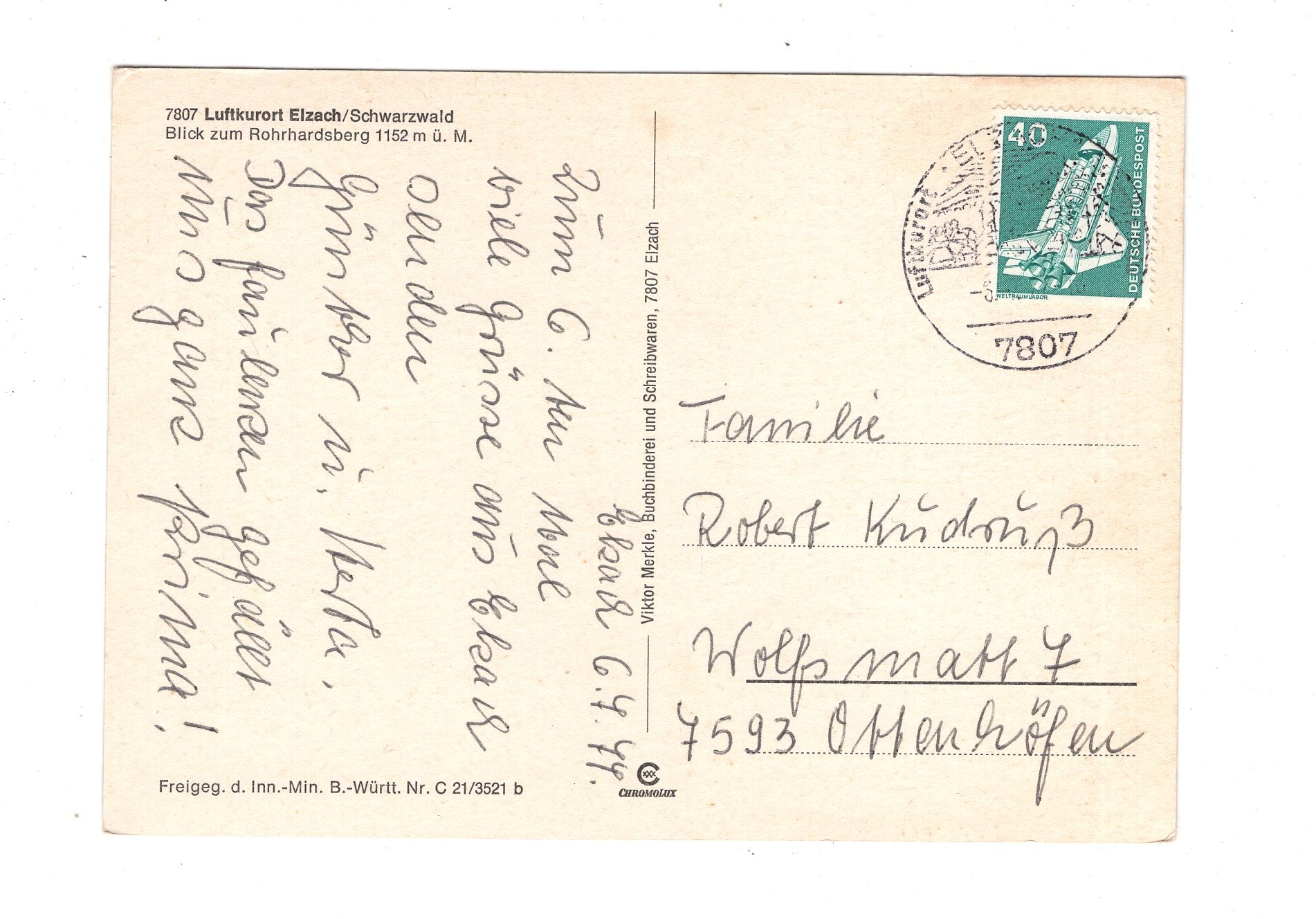 Ansichtskarte Elzach im Schwarzwald / Blick zum Rohrhardsberg / K1-57