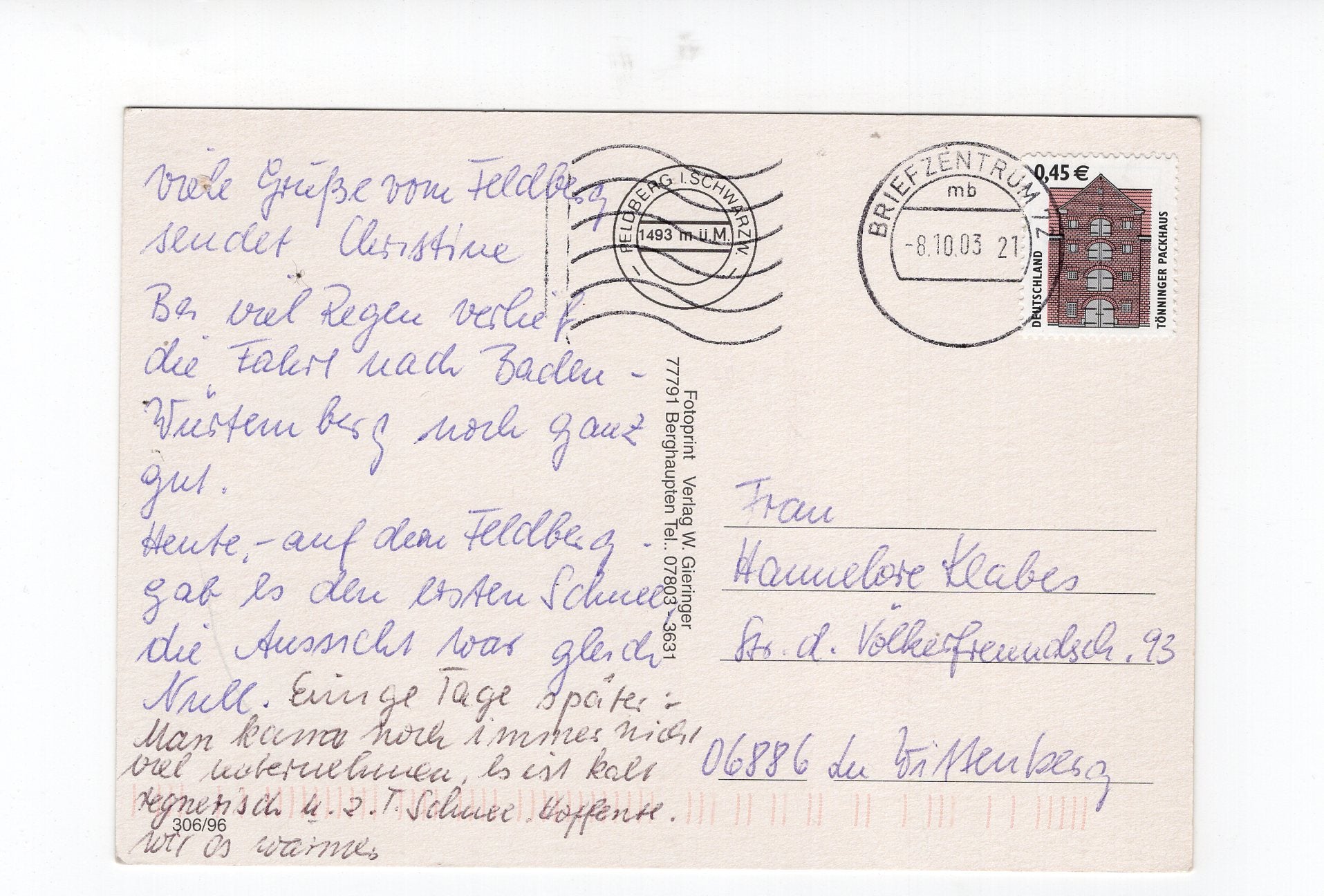Ansichtskarte Feldberg im Schwarzwald
