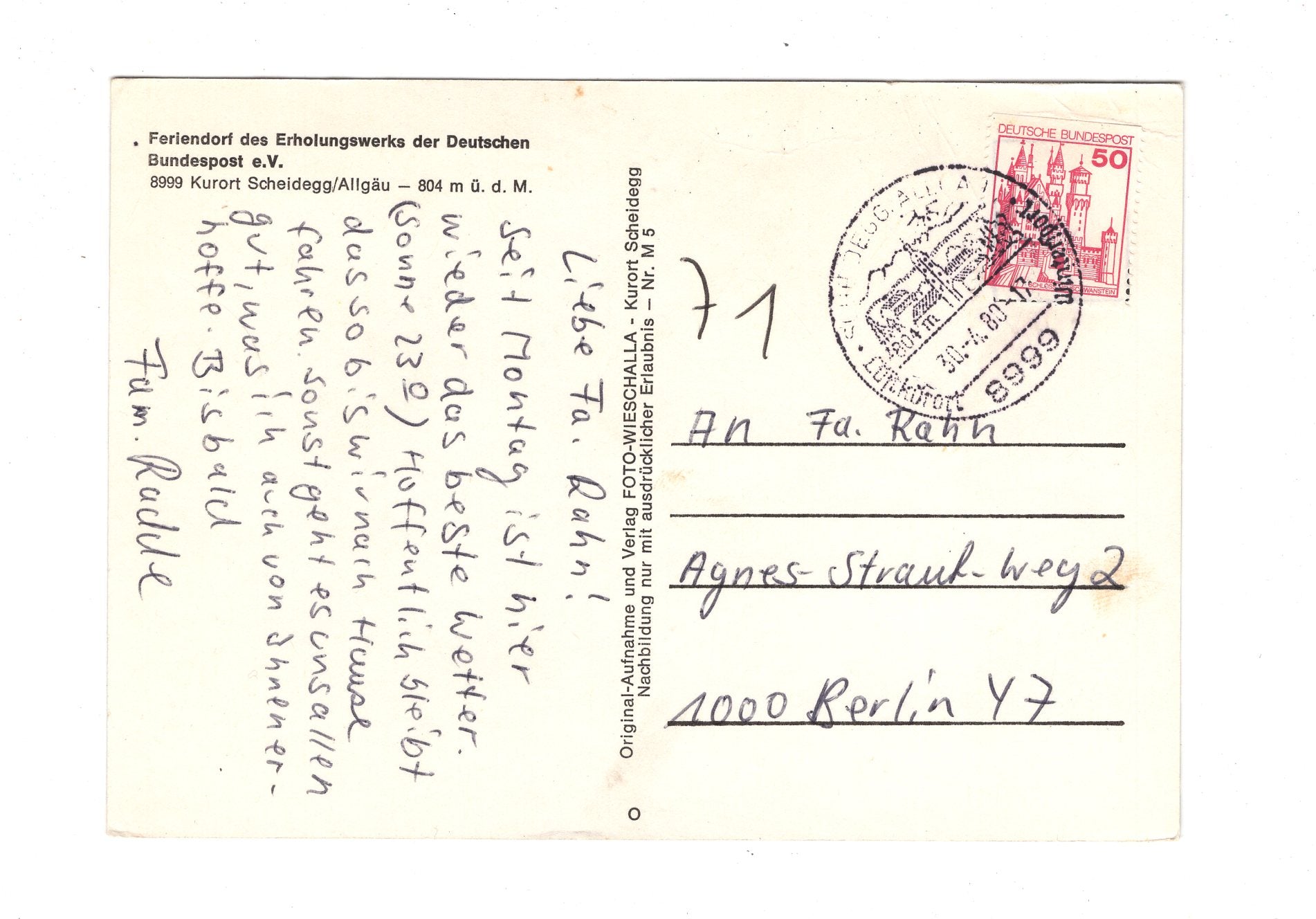 Ansichtskarte Feriendorf der Deutschen Bundespost / Scheidegg im Allgäu / H1-58