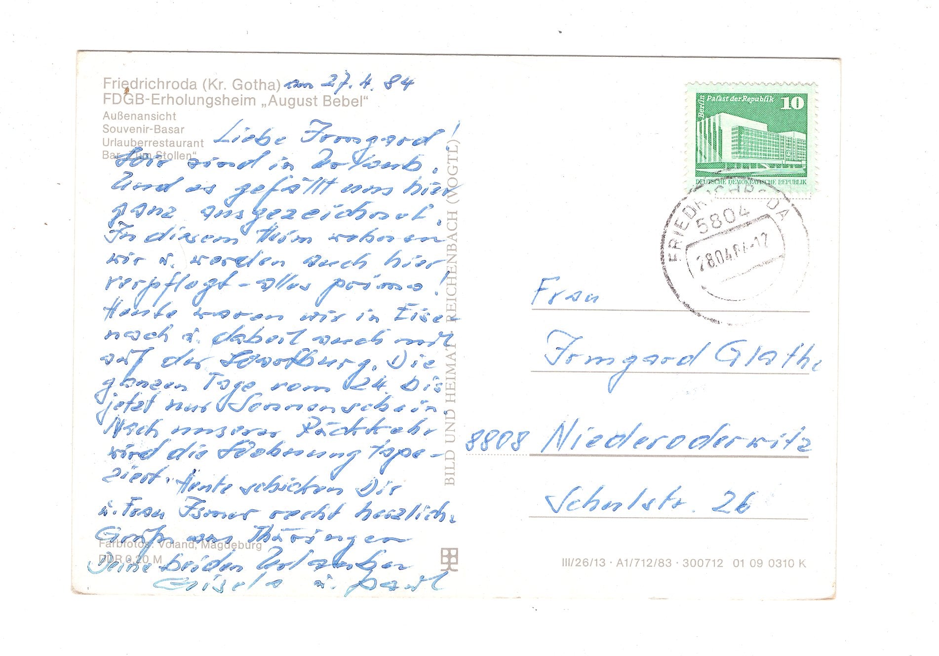 Ansichtskarte Friedrichroda / FDGB-Erholungsheim August Bebel / I1-54