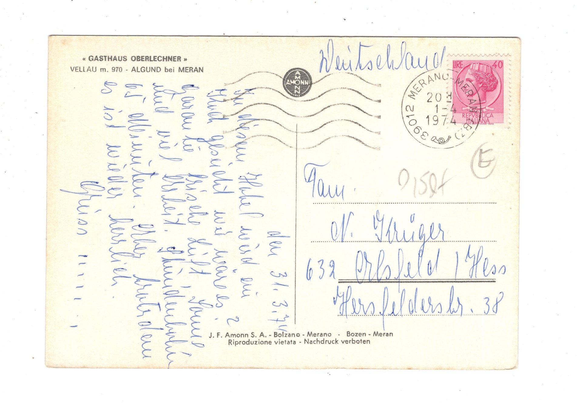 Ansichtskarte Gasthaus Oberlechner / Algund bei Meran / Italien / N1-58