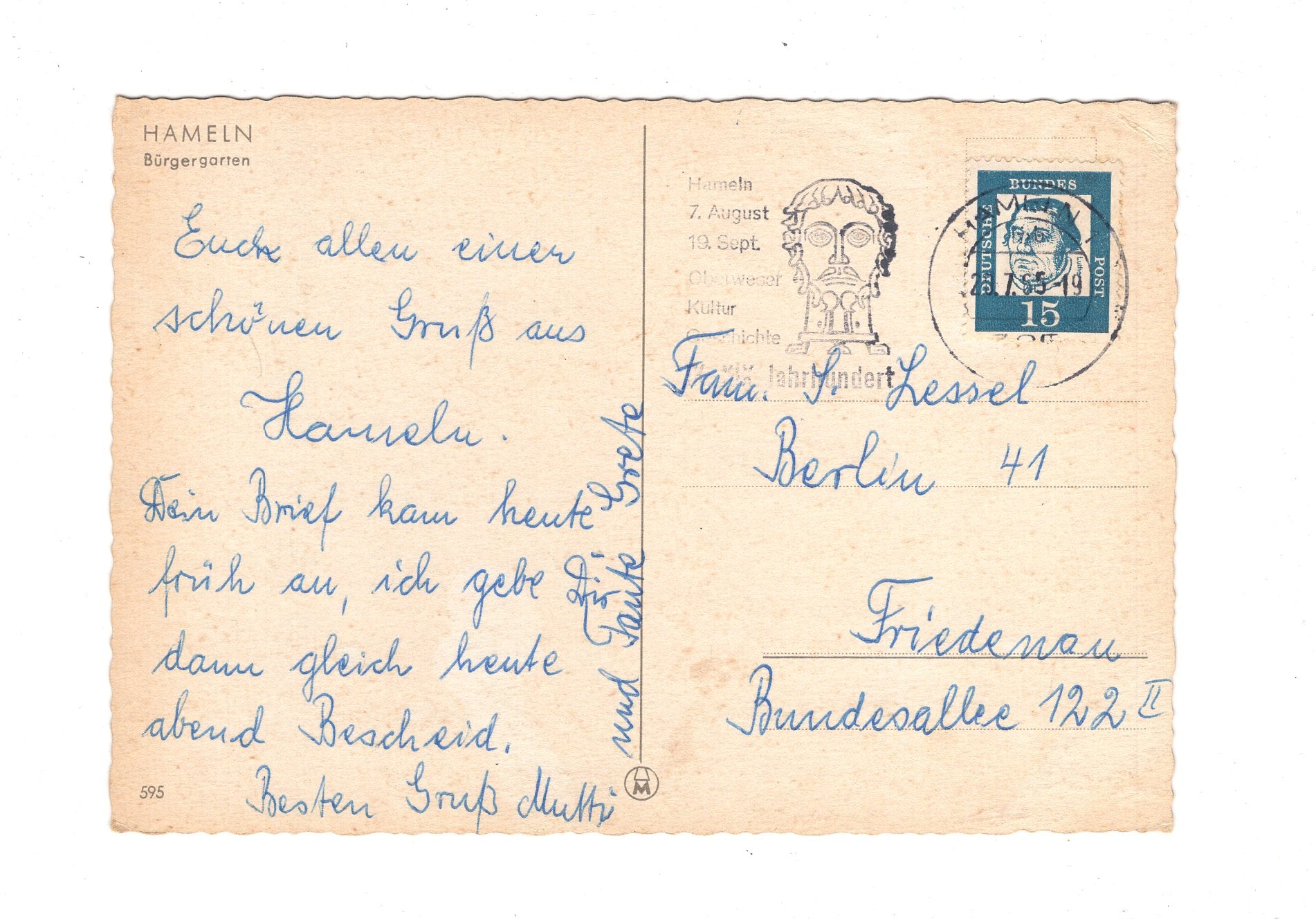 Ansichtskarte Hameln an der Weser / Bürgergarten / I1-64