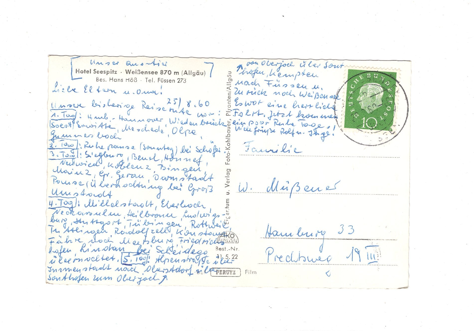 Ansichtskarte Hotel Restaurant Seespitz / Weißensee / Allgäu