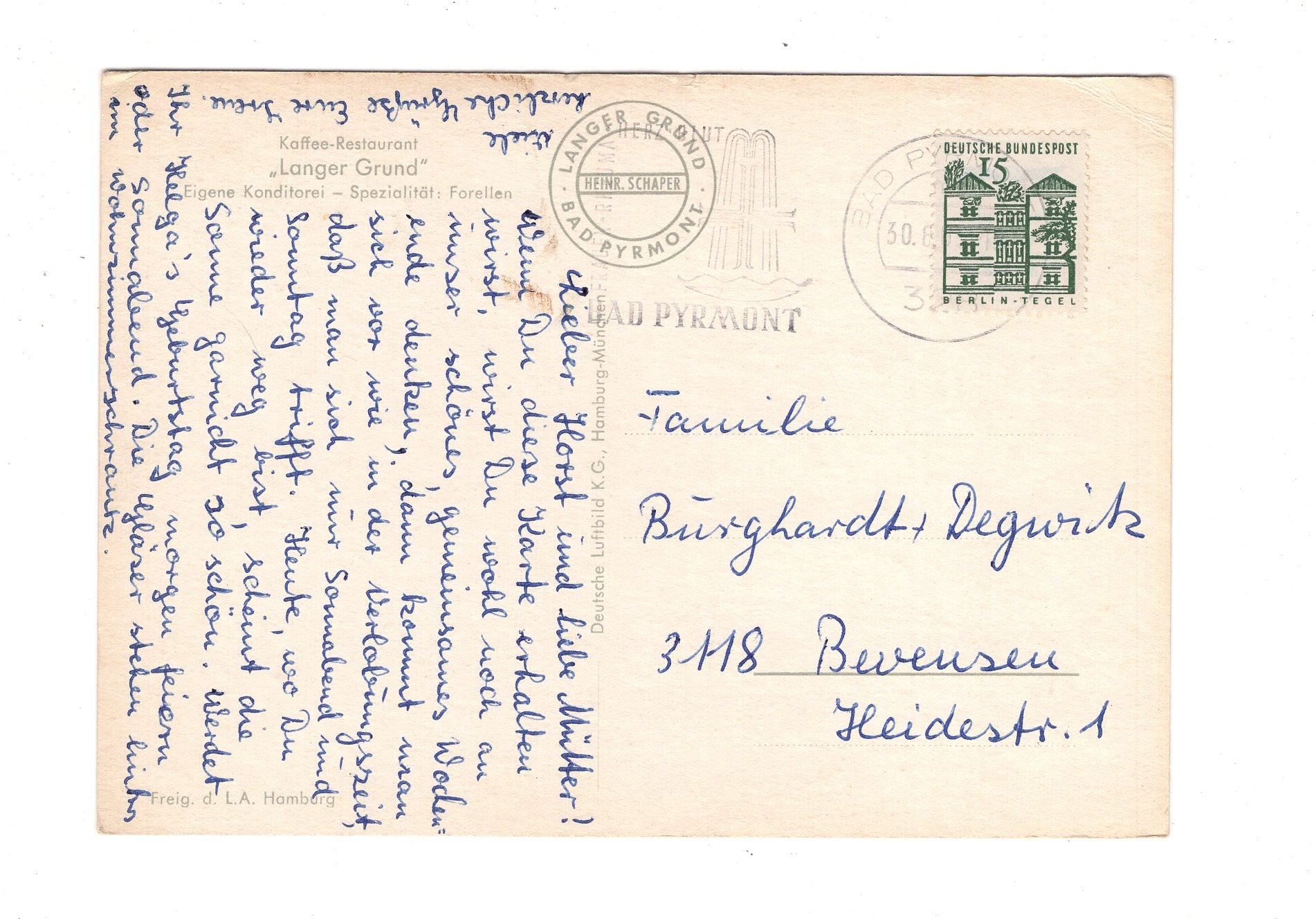 Ansichtskarte Kaffee-Restaurant Langer Grund / Bad Pyrmont / H1-59