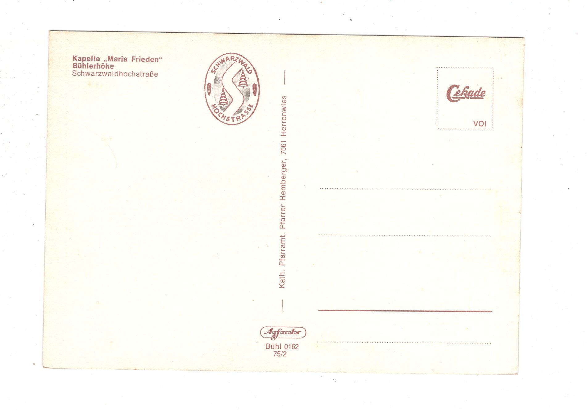 Ansichtskarte Kapelle Maria Frieden / Bühlerhöhe / Schwarzwaldhochstraße / K1-48