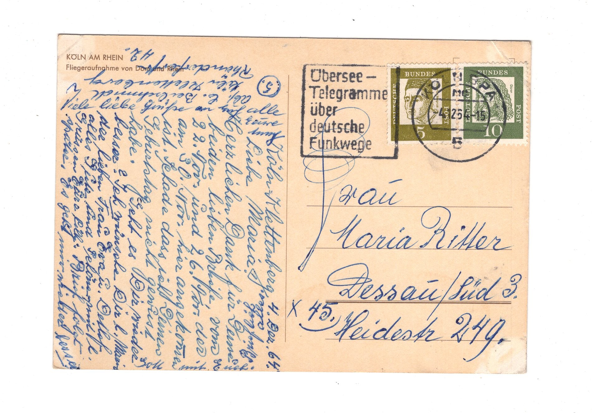 Ansichtskarte Köln am Rhein / Fliegeraufnahme von Dom und Rhein / G1-58