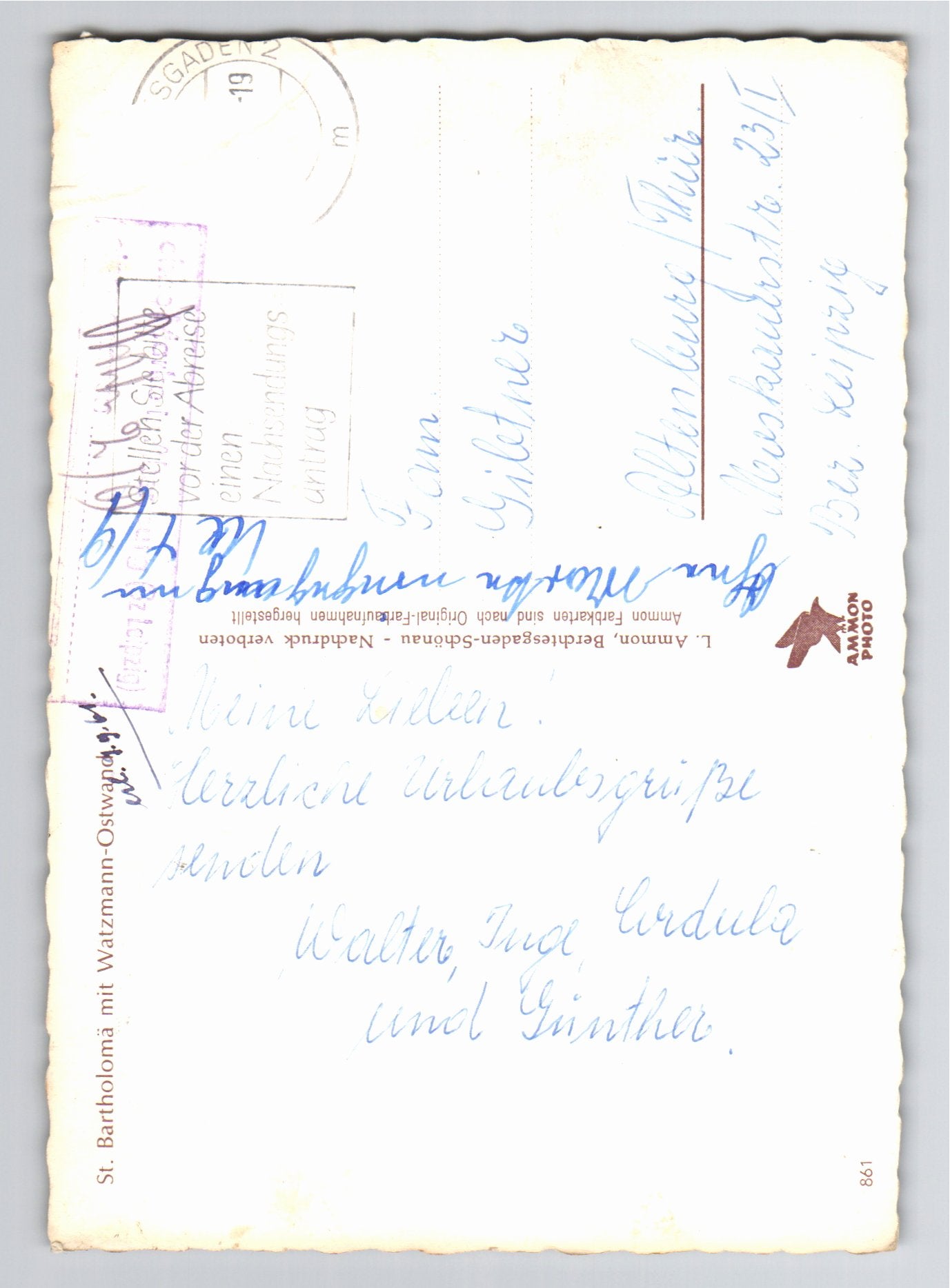 Ansichtskarte Königssee / St. Bartholomä mit Watzmann-Ostwand