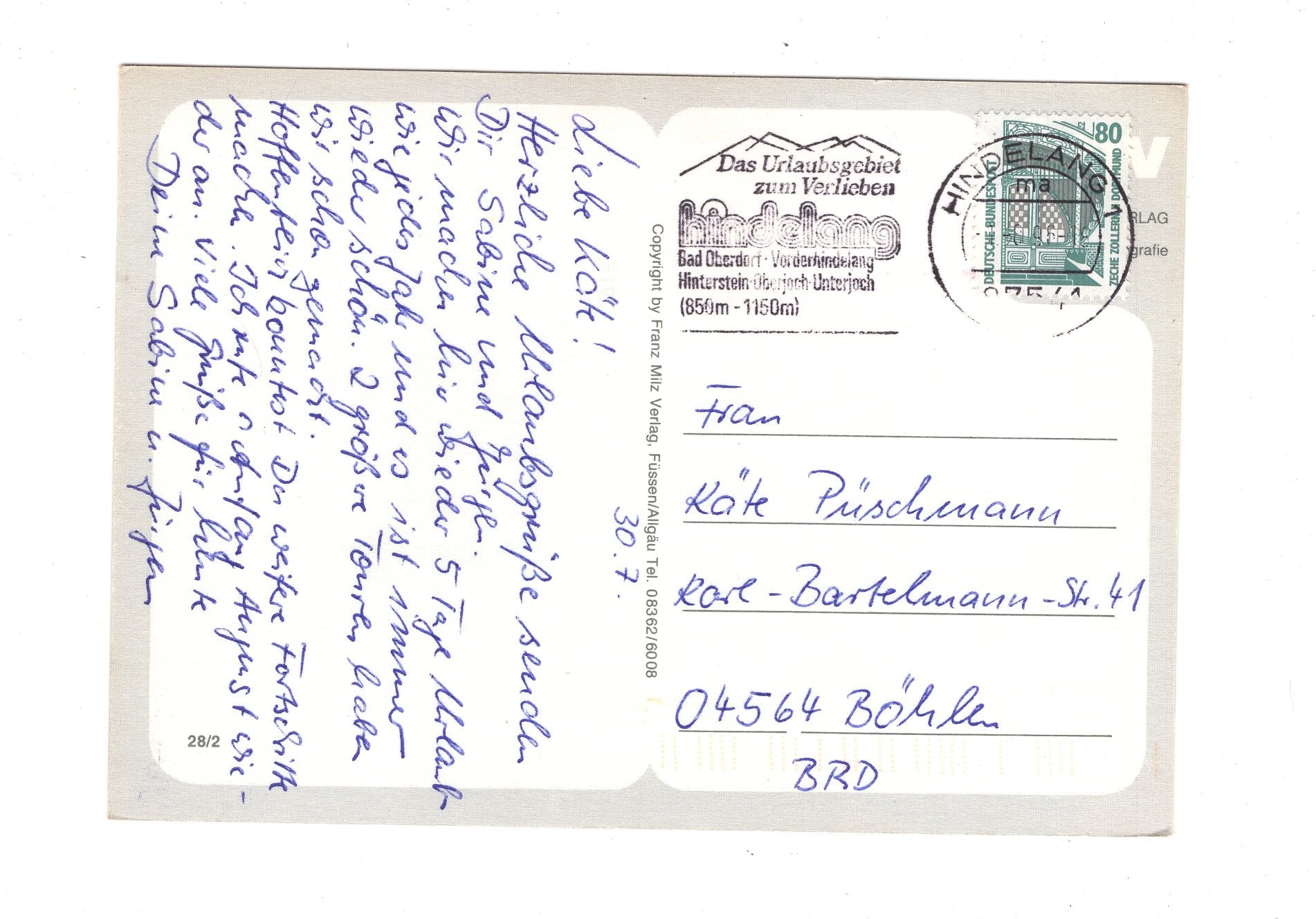 Ansichtskarte Kurort Hindelang / Oberallgäu / I1-61