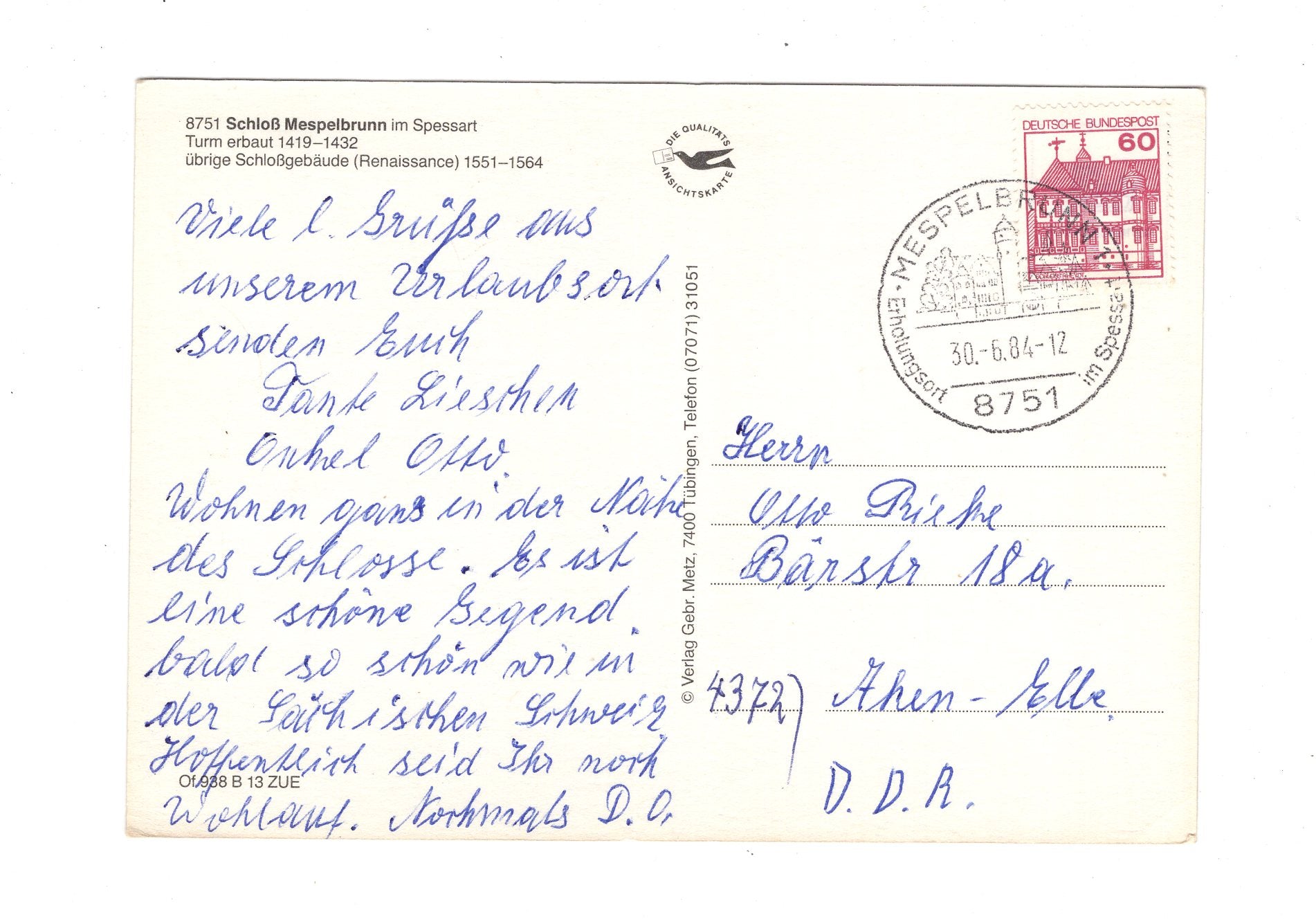 Ansichtskarte Schloss Mespelbrunn im Spessart