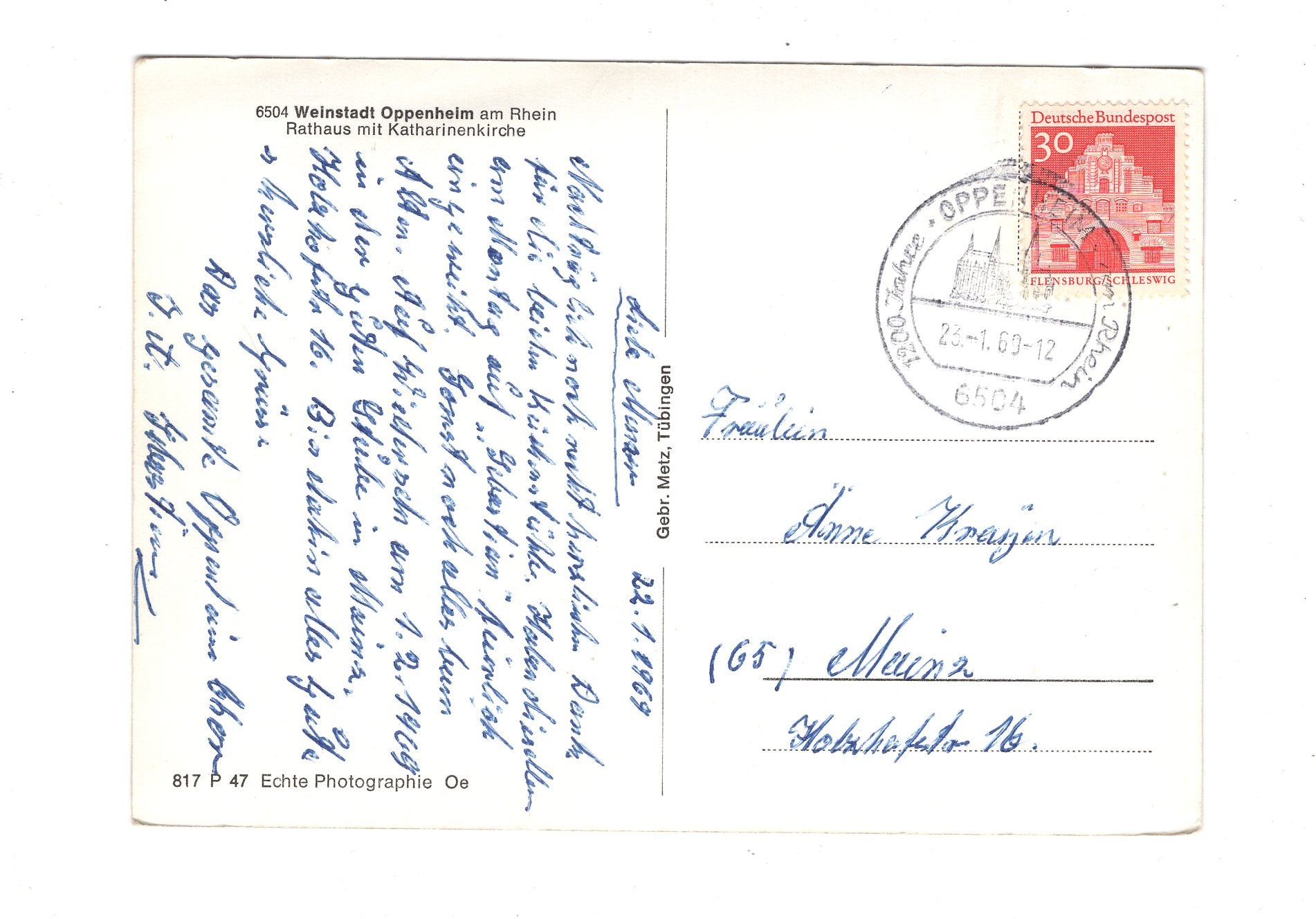 Ansichtskarte Oppenheim am Rhein / Rathaus mit Katharinenkirche