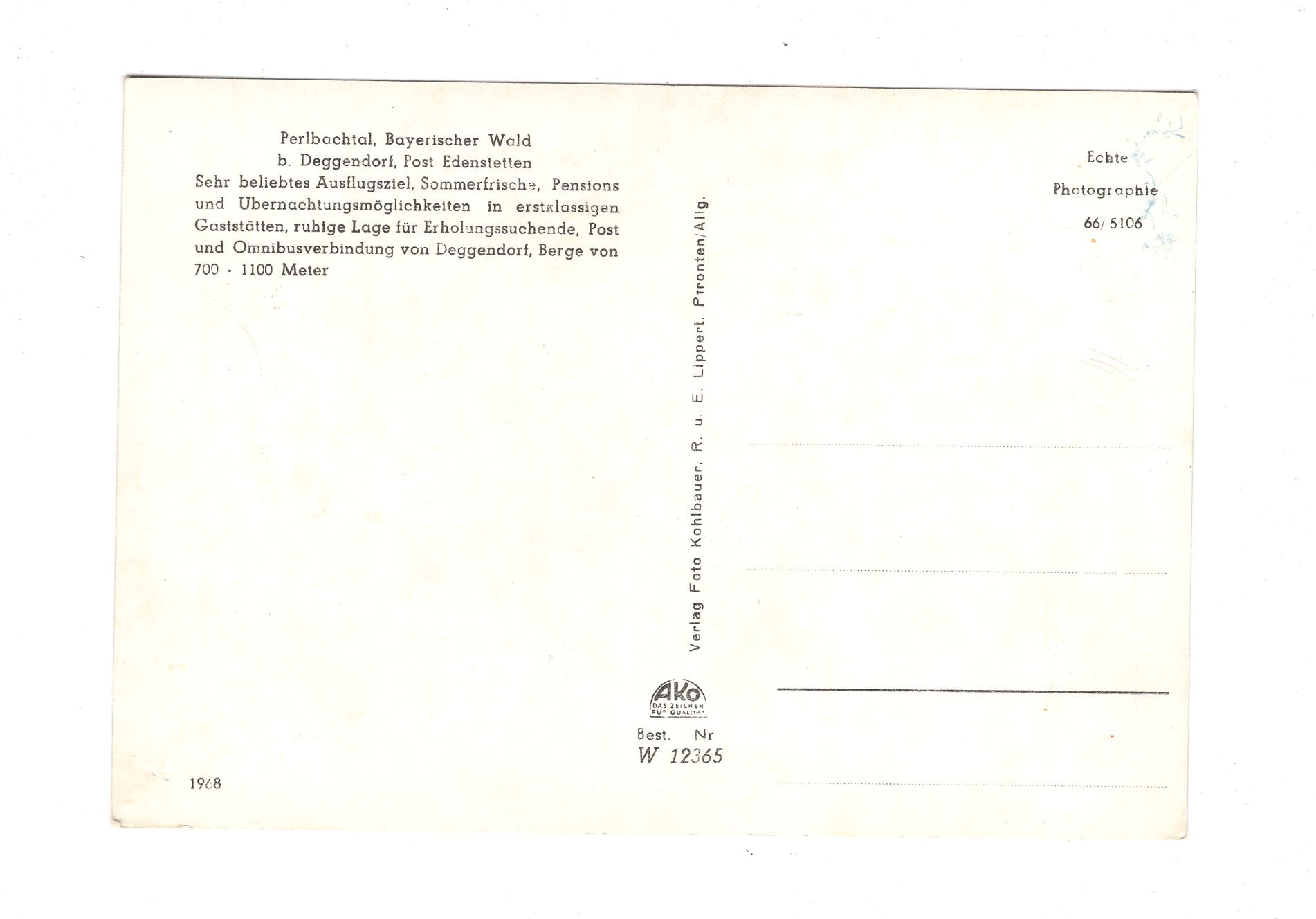 Ansichtskarte Perlbachtal / Bayerischer Wald / bei Deggendorf / I1-52