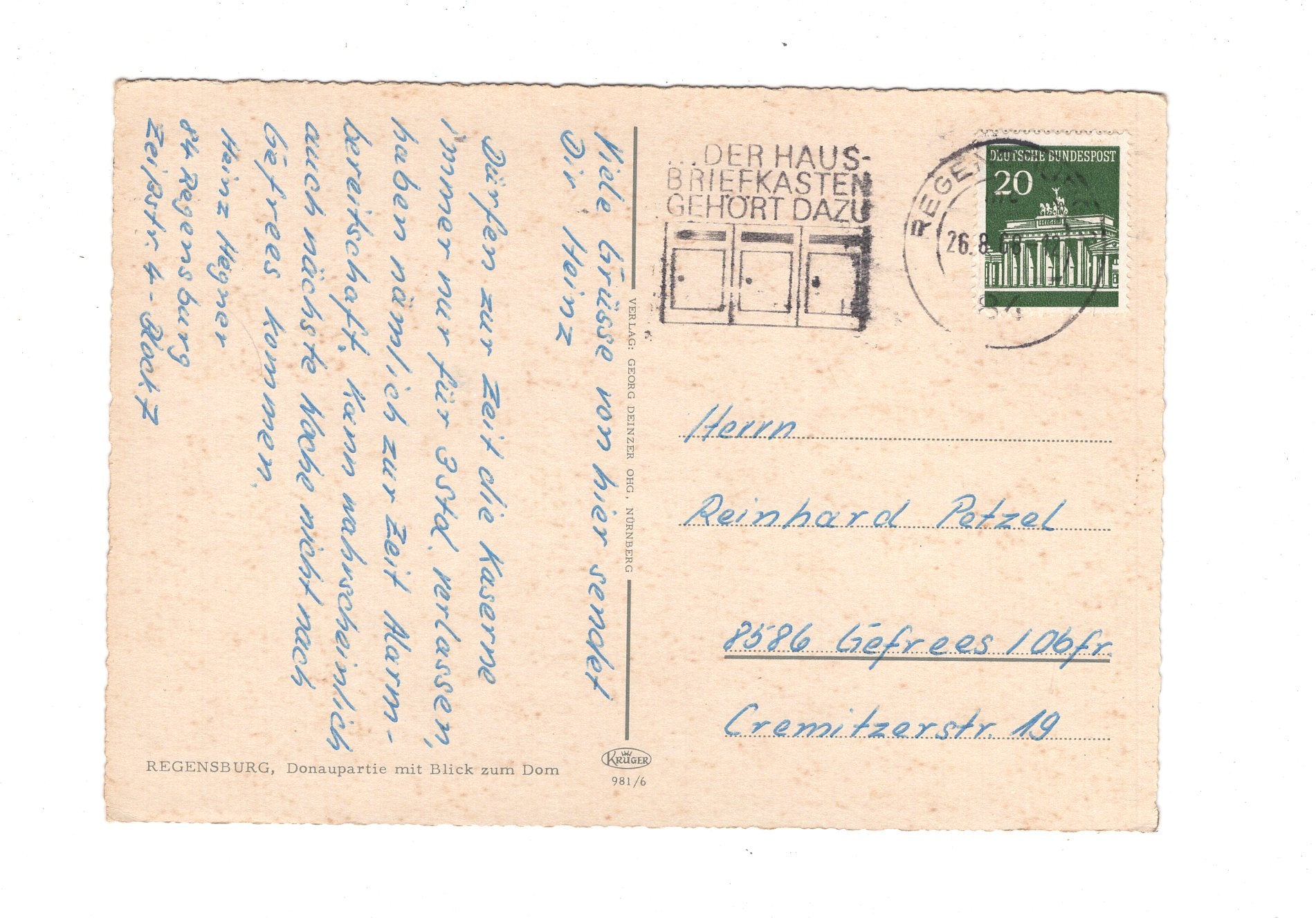 Ansichtskarte Regensburg / Donaupartie mit Blick zum Dom / H1-69
