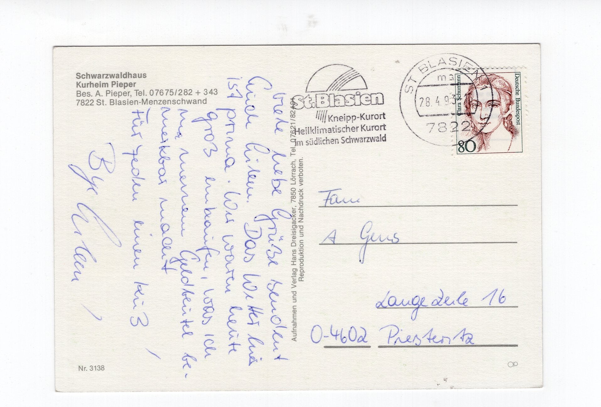 Ansichtskarte Schwarzwaldhaus Kurheim Pieper / St. Blasien-Menzenschwand
