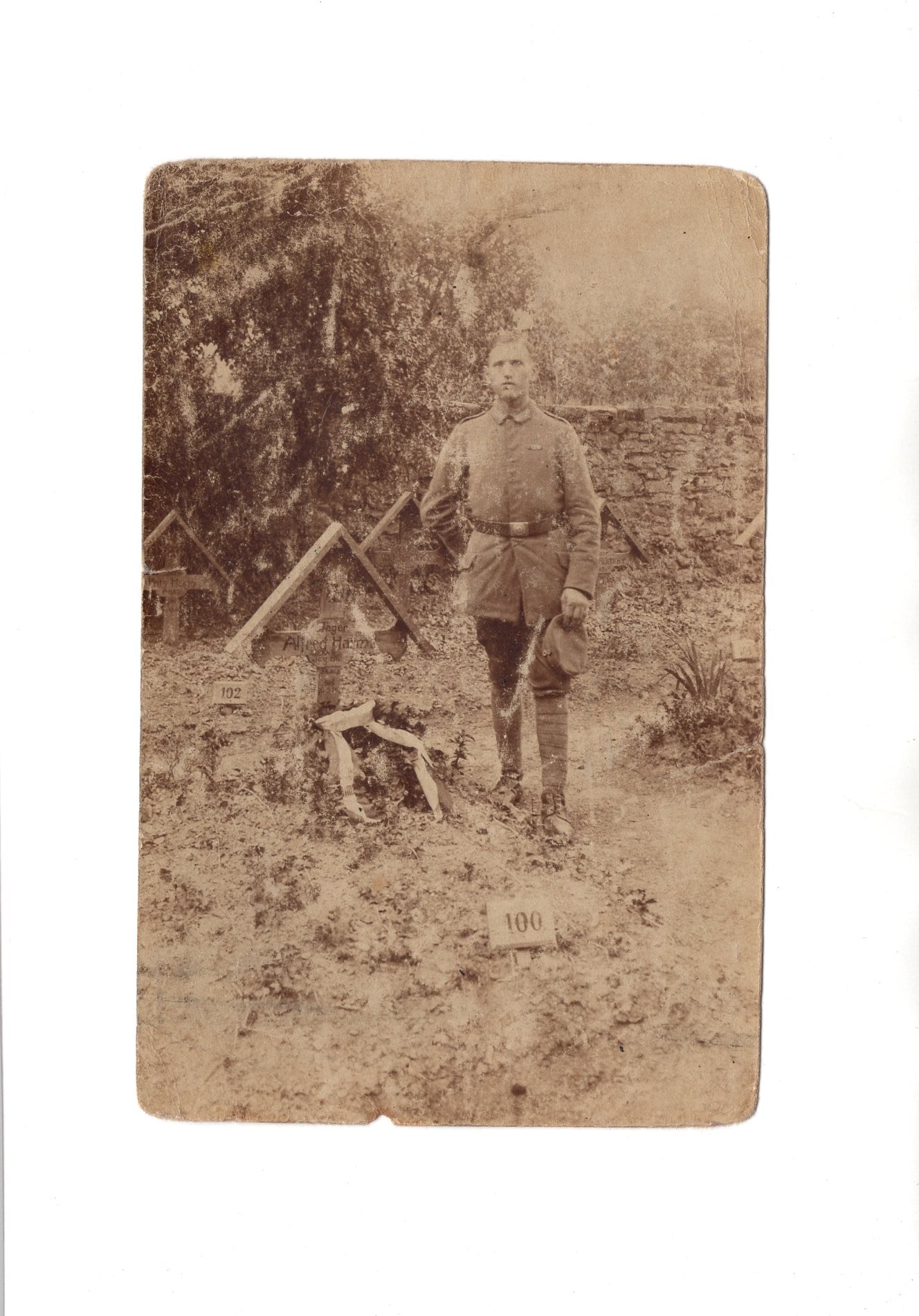 Ansichtskarte Soldat am Grab eines Kameraden