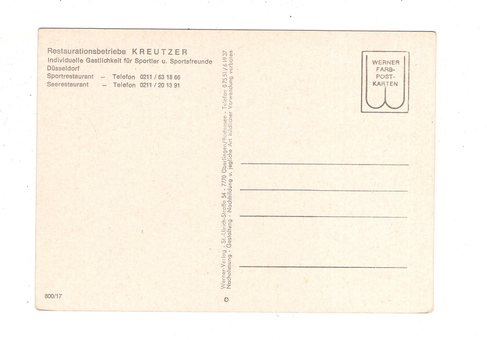 Ansichtskarte Sportzentrum Düsseldorf / Restaurationsbetriebe Kreutzer / J1-53