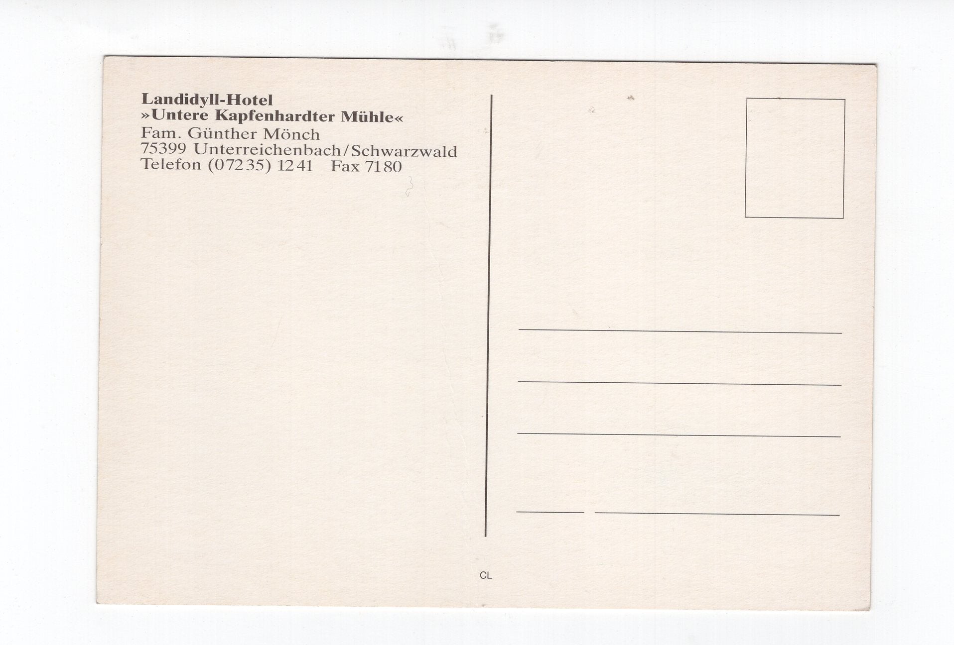 Ansichtskarte Unterreichenbach / Schwarzwald / Hotel Untere Kapfenhardter Mühle