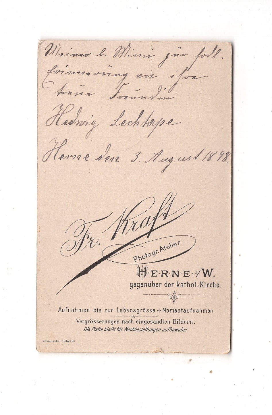 Fotografie Damenportrait mit Widmung - Herne 1898